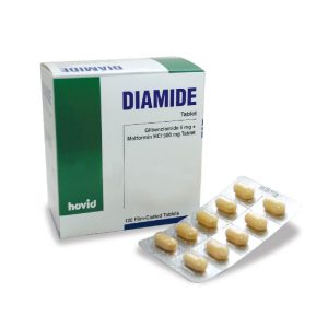 Diamide 5mg/500mg Tablet (f/c)Active IngredientsGlibenclamide BP 5mg, Metformin HCI BP 500mgDosage FormBlister 1×10’s, 12×10’s